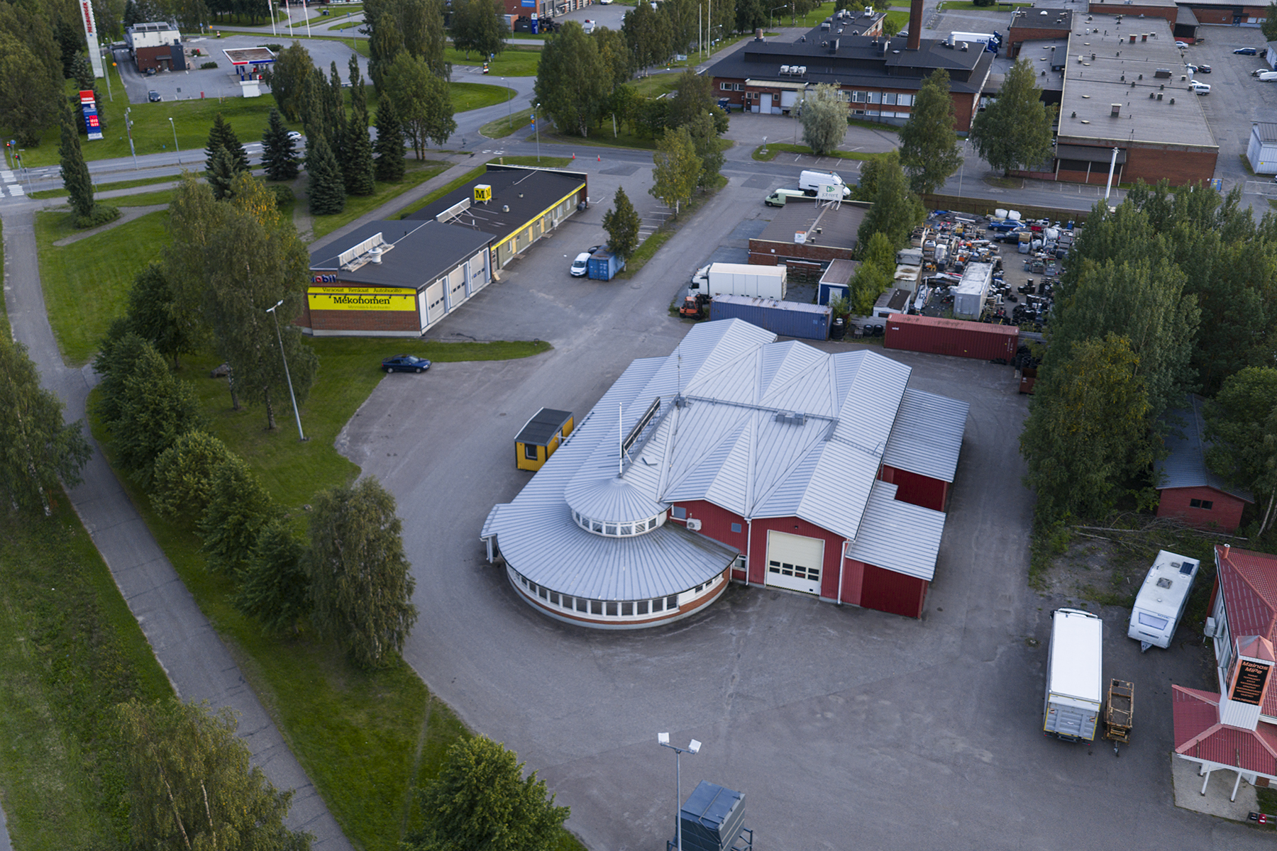 Rakennuksessa kolme hallia joiden sisäkorkeus 5 m, 2 kpl 150m2 ja 1 kpl 160m2.Päädyissä nosto-ovet.Lisäksi myymälä/toimistotilaa 200m2 . Yläkerrassa sosiaali/saunatilat 80m2 .Sivuseinällä kylmää varastotilaa. Rakennuksen yleiskunto on hyvä ja siisti. Asfaltoitu sekä valaistu piha-alue.